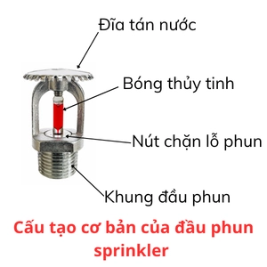 Một đầu phun sprinkler tiêu chuẩn gồm các bộ phận chính:
